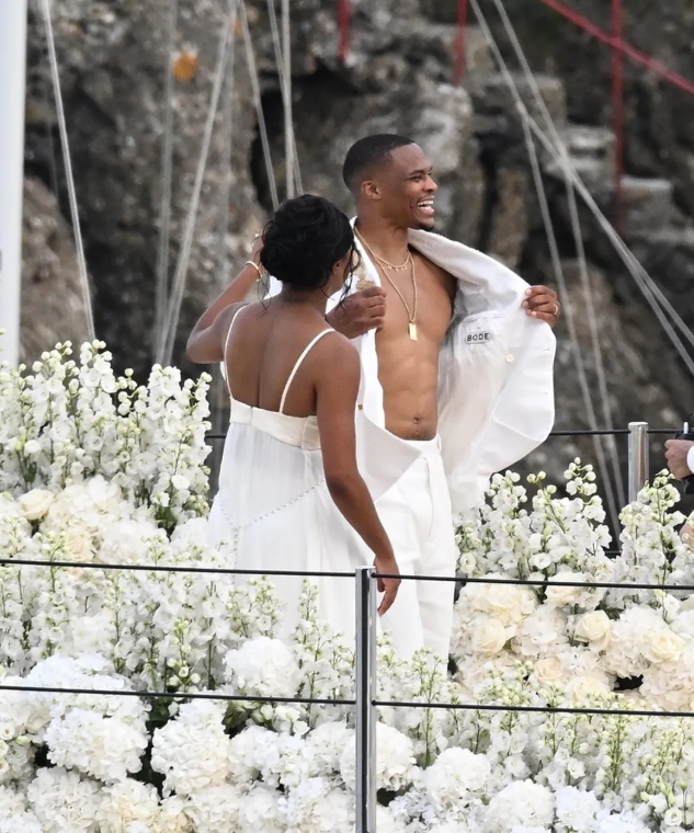8月26日,威斯布鲁克与妻子在意大利浪漫庆祝结婚十周年。两人选择在游艇上举办了一场温馨的仪式,重温誓言时刻。